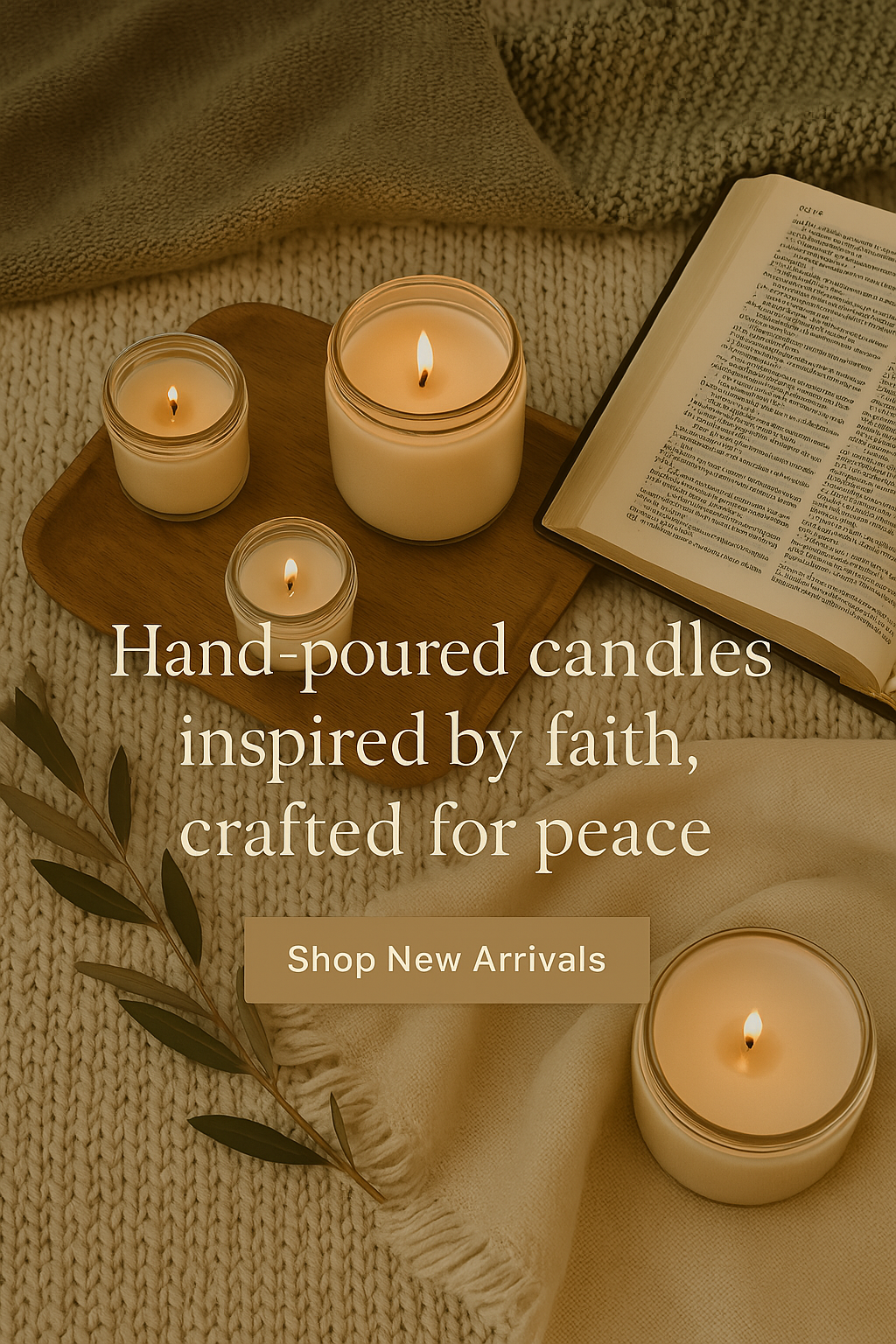 Hand-poured with care and inspired by biblical simplicity, each blend is rooted in earth tones, clean ingredients, and a sense of divine calmness.